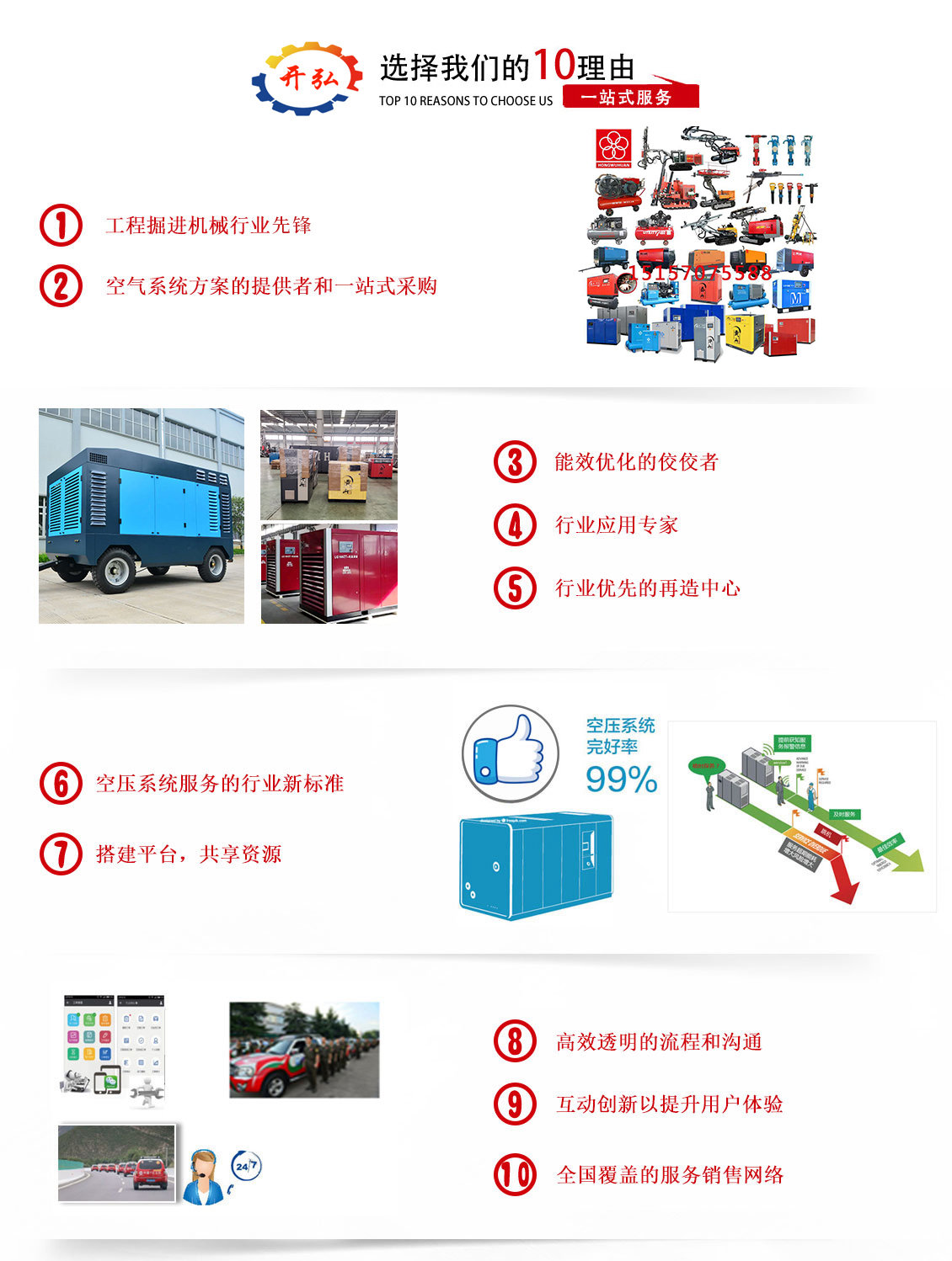 ? ? ? ? 我公司始終堅持紅五環(huán)經營戰(zhàn)略,堅持中高端品牌空壓機、鉆機的經營發(fā)展思路 ,專業(yè)于品牌空壓機、鉆機的銷售與維修服務,并提供空壓機、鉆機維修及零備件供應(鉆桿,鉆頭,沖擊器等鉆機配件;空氣濾芯、機油濾芯、油氣分離器、專用潤滑油、冷卻液……